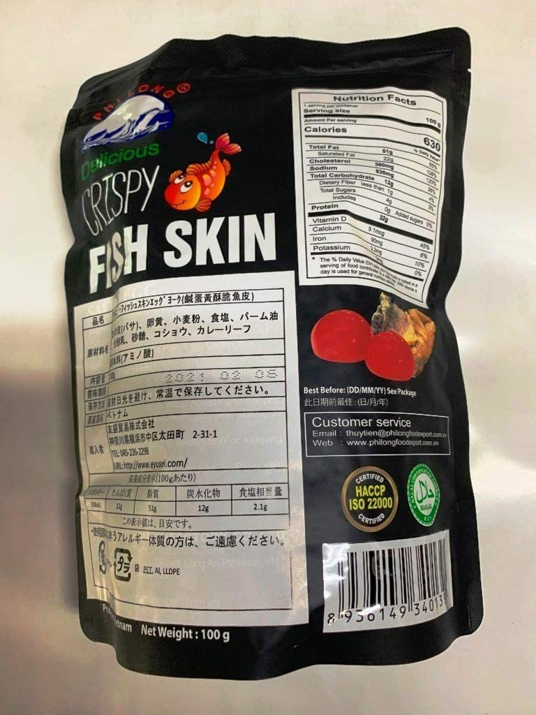 ・原材料名:魚の皮(バサ)、卵黄、小麦粉、食塩、パーム油、全粉乳、砂糖、コショウ、カレーリーフ、調味料(アミノ酸)