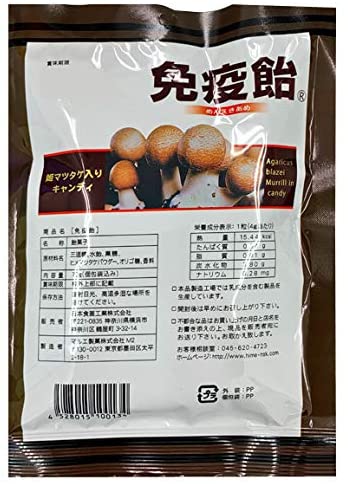 日本食菌工業株式会社 免疫飴<70g> 黒糖味 ◎GABA(ギャバ)を含有するヒメマツタケの粉末を黒糖に練り込んだ飴です。【商品詳細】■名称:飴菓子■原材料名:三温糖、水飴、黒糖、ヒメマツタケ、オリゴ糖、香料■内容量:70g(個包装込み)■賞味期間:15ヵ月■保存方法:直射日光、高温多湿な場所を避けてください。■販売者:日本食菌工業株式会社■製造者:マル工製菓株式会社*本品製造工場では、乳成分を含む製品を生産しています。*開封後は早めにお召し上がり下さい。【栄養成分表示】1粒(4g当たり)・熱量:15.44kcal・たんぱく質:0.04g・脂質:0.01g・炭水化物:3.80g・ナトリウム:0.28mg*画像はイメージです。実際にお届けする商品とパッケージ等が異なる場合がございますが基本的に中味の変更はございません。中味の変更のある商品については、商品情報を訂正して販売を行っております。