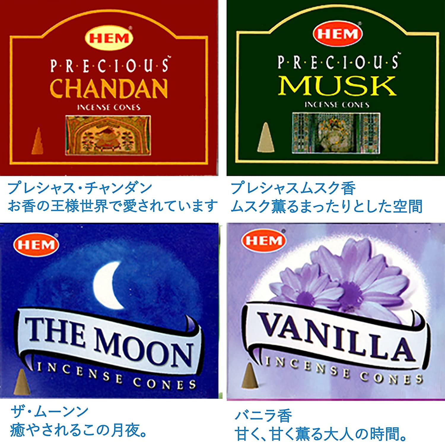 HEM社 インド製 コーンタイプ香 12種類の香り 合計12箱120個入(アソートセット) ☆お香の世界へようこその小冊子付き☆