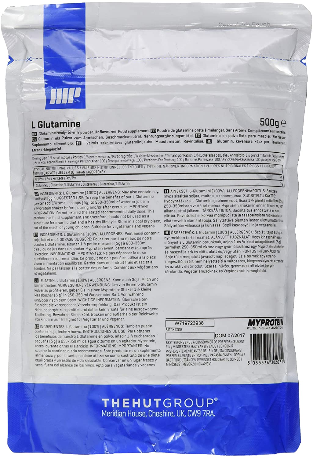 マイプロテイン L‐ グルタミン パウダー500g (ノンフレーバー)