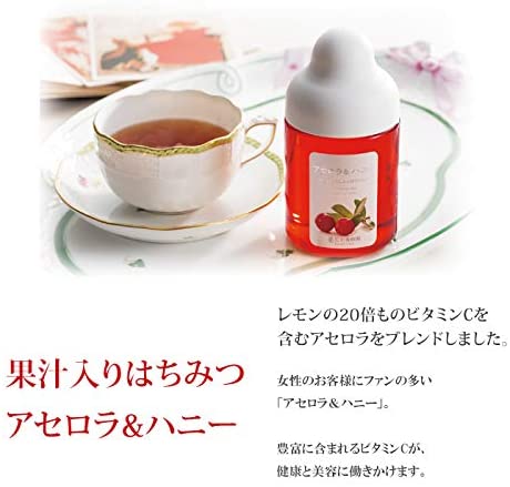 蜂蜜に、レモン以上にビタミンCを含むアセロラをブレンドしました。 蜂蜜と果汁の組み合わせで、バランスの良い健やかな毎日を。 果汁蜜シリーズには、栄養たっぷりの蜂蜜とビタミンがバランス良く含まれています。 アセロラと蜂蜜のパワーでいつまでも若さを保ってください。 ※果汁由来の成分が浮遊・沈殿することがあります。また、はちみつと果汁が分離することがありますが、品質上問題はありません。良く振ってご利用ください。