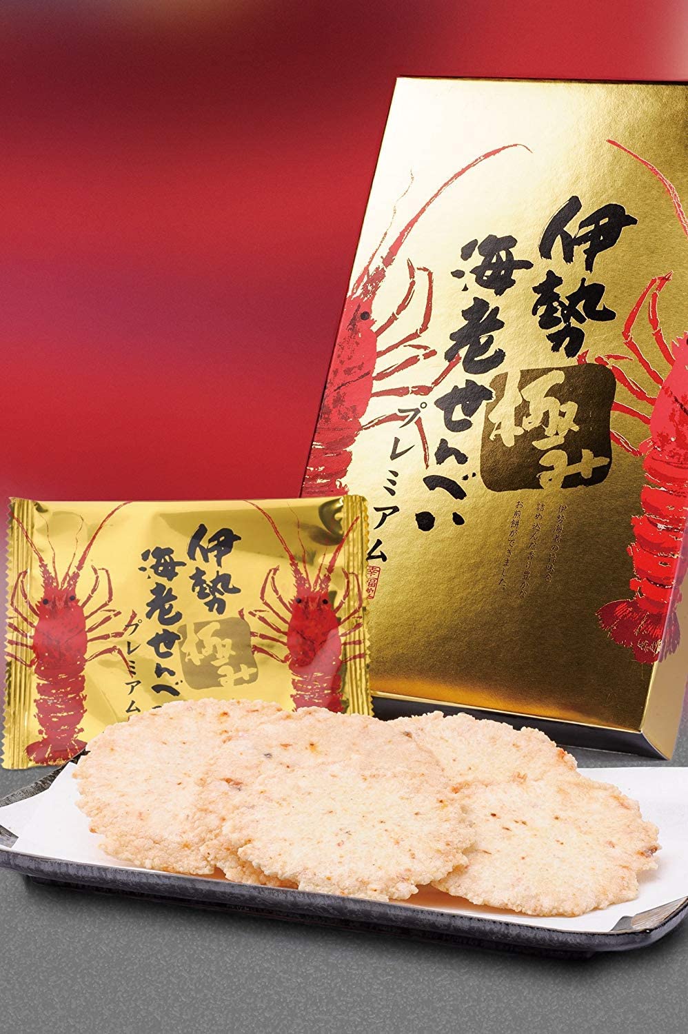 『農林水産大臣賞』を受賞した幸福堂の代表商品。豪華な金のパッケージに引けを取らない内容のお煎餅には、伊勢海老まるごとパウダーを使用しており、 香ばしい海老の香り、そしてカリっとした食感が特徴です。販売店も伊勢志摩に止まらず、様々な店舗様でお取り扱いいただいております。伊勢海老という名前の由来は、その昔、伊勢の国から宮中へ送られていたことからこの名前がついたと言われております。また伊勢は「威勢が良い」とかけて武士に好まれ、伊勢海老の姿が鎧姿に似ているので「具足煮」というお料理まであるほどです。