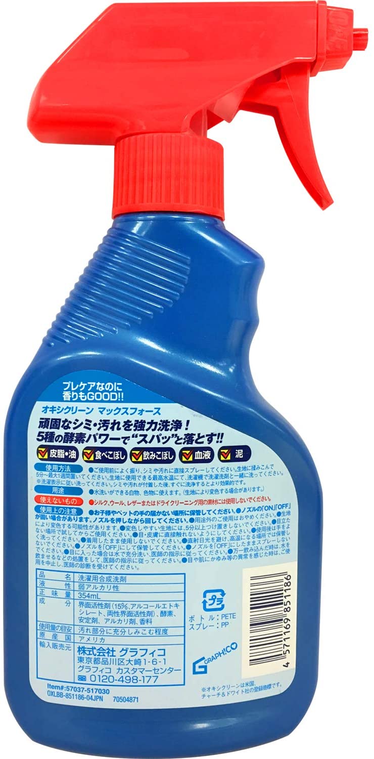 商品紹介「オキシクリーン マックスフォース 430g」は、濃密ジェルがシミをスパッと落とすシミ抜きです。お洗濯前にシュッとひとかけ、頑固なシミ・汚れを落とします。色柄物にも対応しています。さわやかな香り。ご注意(免責)>必ずお読みくださいご注意(免責)> 必ずお読み下さい。在庫完売の際は、お取寄せ又はキャンセルとなる場合がございます。また、配送予定日と弊社商品お届け予定日は異なる場合もございますので予めご了承下さい。商品は予告なくパッケージ変更の場合もあります。※お客様都合によるご返品はお受けできません。
