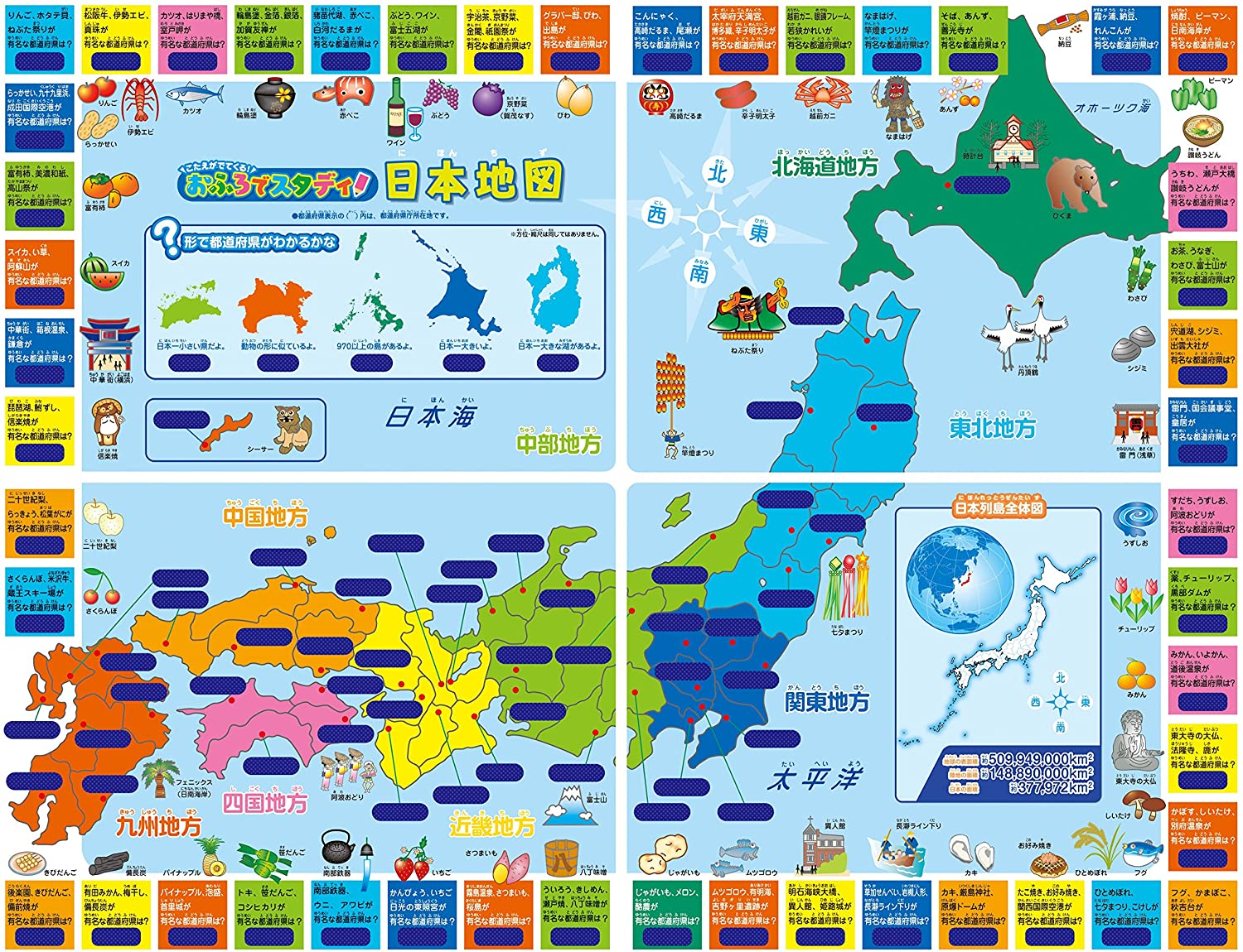 スタイル:日本地図?|?パターン名(種類):単品★都道府県名と都道府県庁所在地が学べます。★名所名産などによる都道府県名当てクイズが楽しめます。★お湯をかけたり温めると答えが出て、繰り返し学ぶことができます[セット内容]シート4枚(.co.jpより)