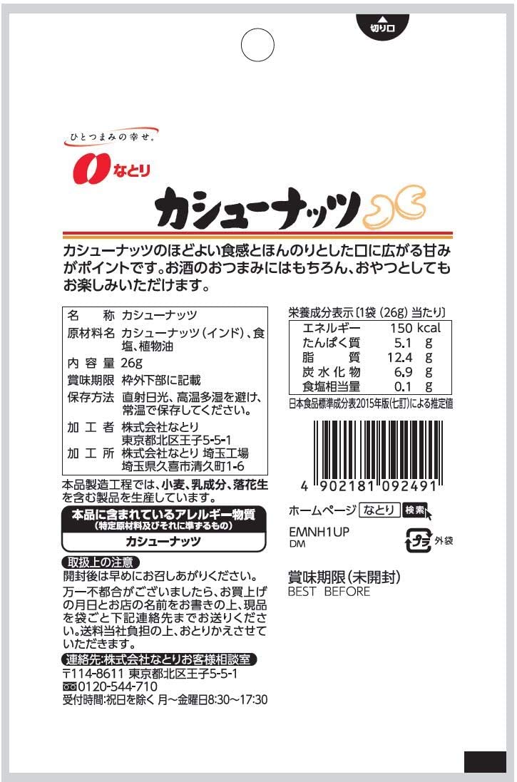 なとり ジョリーパックカシューナッツ 26g ×10袋