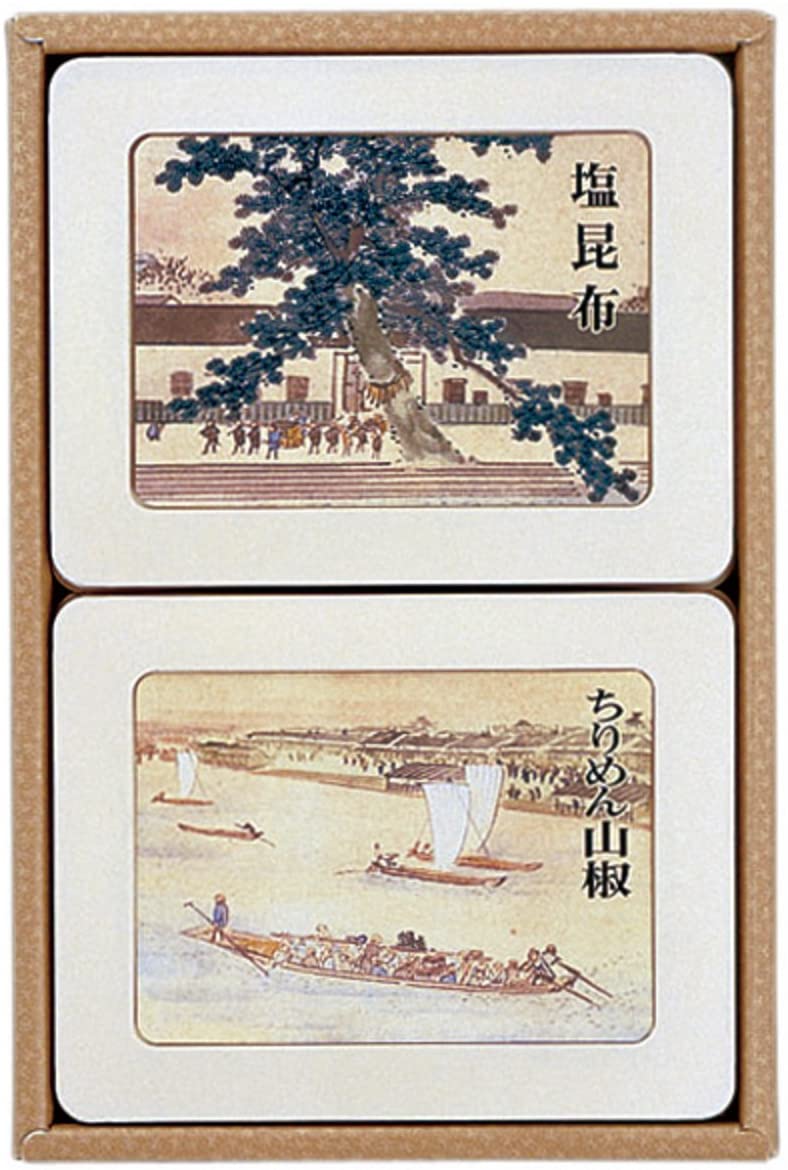 塩昆布108g×1、ちりめん山椒78g×1と内容量が変更になっております。
