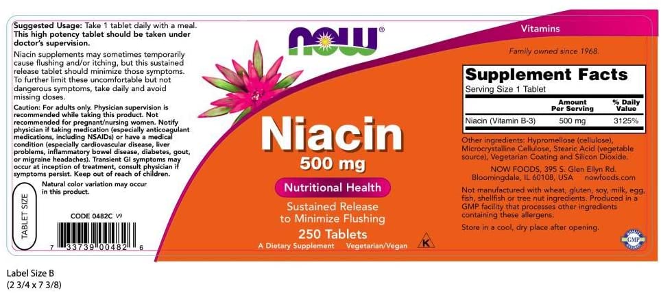 [海外直送品] ナウフーズ Niacin Tr 250 Tabs 500 mg