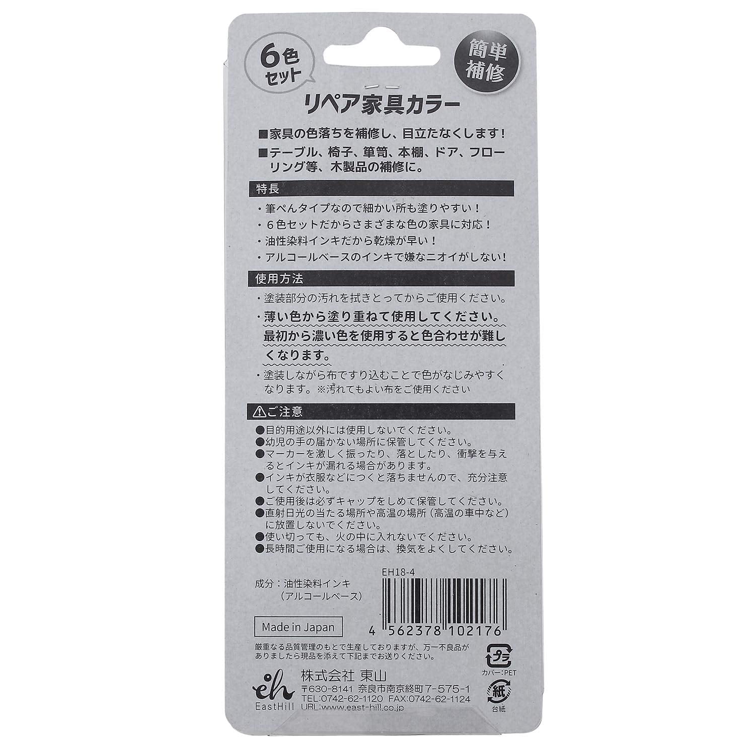 EastHill リペア家具カラー 6色セット 筆ぺんタイプ EH18-4