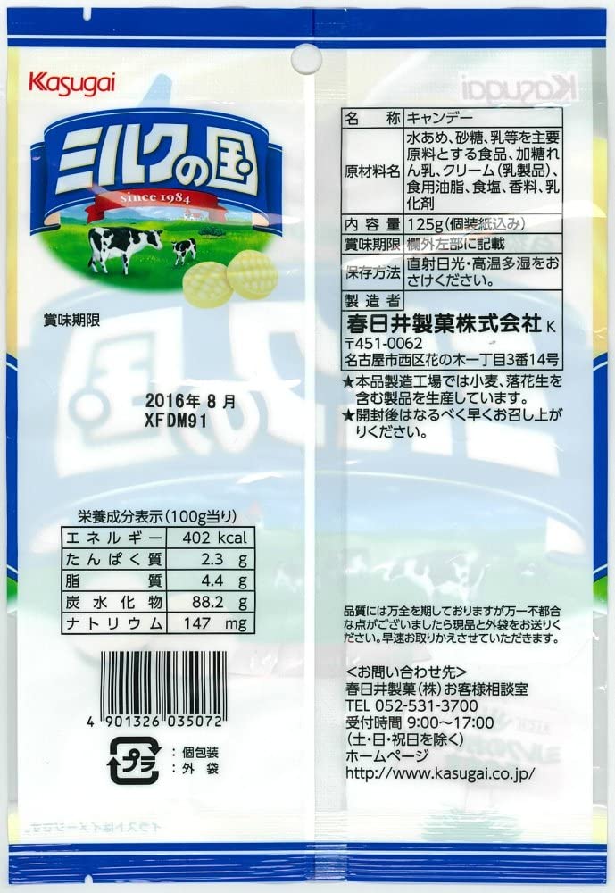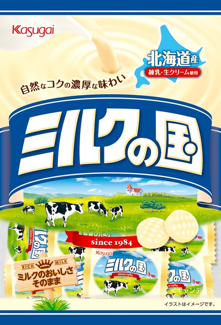 「春日井製菓 ミルクの国」は、自然なコクの濃厚な味わいが特長のキャンディです。ミルクのおいしさそのままに、濃厚さやコクが感じられるキャンディです。自然なミルクのおいしさが伝わるようなデザインです。北海道産練乳・生クリーム使用。ミルクカルシウム配合。