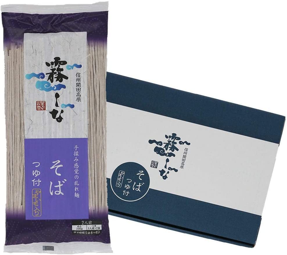 (沖縄・離島には送付出来ません)(同梱・代引き不可)乱れづくり製法で麺に縮れを入れ、香り高い石臼挽きそば粉を使用してより風味豊かに仕上げました。 つゆ付きなので、いつでもお手軽に風味豊かな味わいをお楽しみいただけます。 サイズ 個装サイズ:32×24×8cm 重量 個装重量:2500g 仕様 ゆで時間目安:6分~7分 賞味期間:製造日より270日 保存方法:常温 名称:干しそば  セット内容 (麺200g、つゆ25g×2袋)×10袋入 製造国 日本 つゆ付き。  【製造者】 株式会社 霧しな 〒397-0302 長野県木曽郡木曽町開田高原西野5227-121    乱れづくり製法で麺に縮れを入れ、香り高い石臼挽きそば粉を使用してより風味豊かに仕上げました。 つゆ付きなので、いつでもお手軽に風味豊かな味わいをお楽しみいただけます。 原材料 めん:(小麦粉、そば粉、食塩、小麦たんぱく、やまいも粉、加工澱粉) つゆ:砂糖・果糖ぶどう糖液糖、しょうゆ、食塩、かつおエキス、みりん、椎茸エキス、昆布エキス、調味料(アミノ酸等)カラメル色素、(原材料の一部に大豆、小麦、さば、鶏肉を含む) アレルギー表示(原材料の一部に以下を含んでいます) 卵 乳 小麦 そば 落花生 えび かに