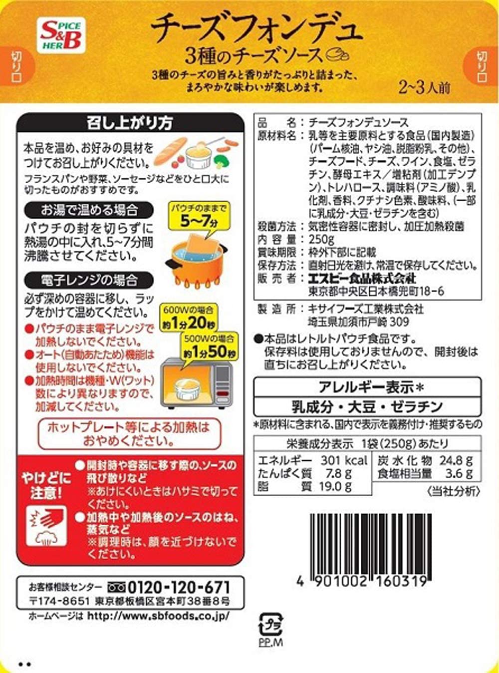 S&B チーズフォンデュ 3種のチーズソース 250g