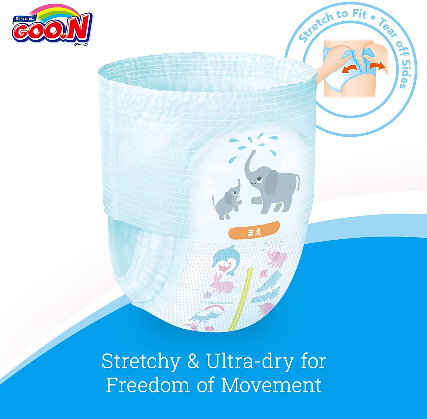 サイズ:パンツ 28枚?|?パターン名(種類):単品商品紹介グーンやわらかフィットパンツBIGより大きいサイズ(体重目安 13~25kg)は、肌着のような薄さとやわらかな」はき心地を実現したベビー用紙おむつのパンツタイプです。ゴム跡がつきにくい大きめサイズ。夜もすぐれた吸収力と男の子のおしっこポイントにあわせ、前側の吸収力を強化し、おねしょ用としても使われています。通気性バックシート使用、イオンの消臭効果で使用後の嫌なニオイを軽減。交換の目安が分かりやすいおしっこお知らせマーク付きのおむつです。女の子用。【使用上の注意】●汚れた紙おむつは早くとりかえてください。●テープは直接お肌につけないでください。●誤って口に入れたり、のどにつまらせることのないよう保管場所に注意し、使用後はすぐに処理してください。●暖房器具の近く等、高温になる場所に置かないでください。●紙おむつ内部の高分子吸水材は、水分を吸収するとゼリー状の粒になりますが、お子様の肌に触れても安心です。●紙おむつですので、洗濯しないでください。あやまって洗濯した場合、紙おむつの中身がが他の衣類につくことがありますが、その場合は充分に洗い流してください。●お肌に合わない場合は、使用をお控えください。 ご注意(免責)>必ずお読みください体質によってかぶれが出る場合や、おむつが合わないなどの場合は使用を中止してください。