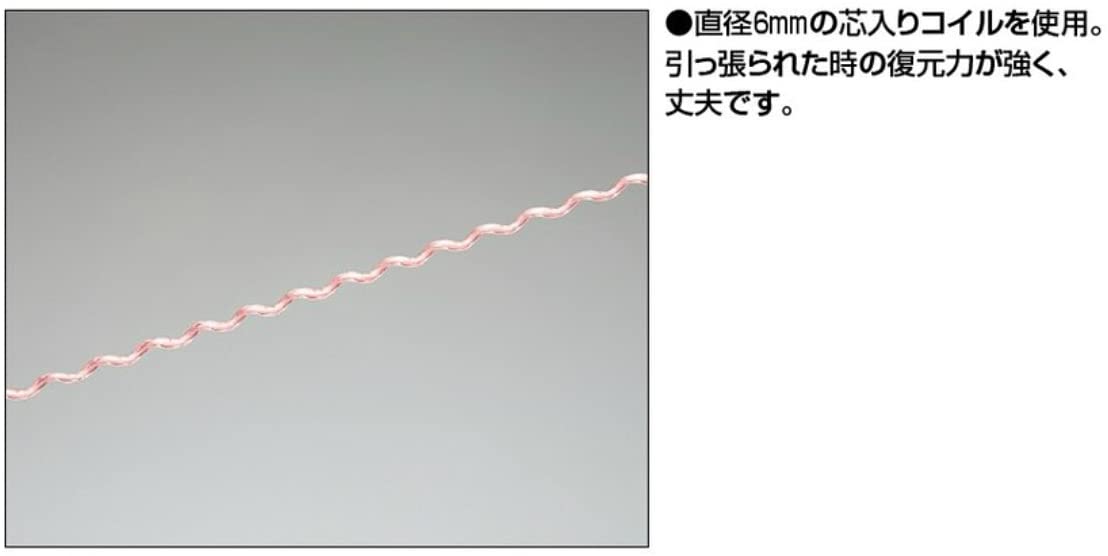 ・メーカー型番 : GY-GEB100B ・寸法 : 幅16×奥行320×高さ16mm ・重量 : 10g ・材質 : チェーン : ポリウレタン、フック : アルミニウム、クリップ : PC、金具 : スチール 【商品詳細】 サイズ:【1個】●金属フックはアルミニウム製で、ベルトなどへの取り付けが簡単です。●コイルチェーンと同色のクリップ付きです。●リングにはカギなどを取り付けられる金具が3個付いているので便利です。●直径6mmの芯入りコイルを使用。引っ張られた時の復元力が強く、丈夫です。●外寸法(W・D・H)/20・320・8 ●質量(KG)/0.013 ●材質/チェーン:ポリウレタン、フック:アルミニウム、クリップ:PC、金具:スチール