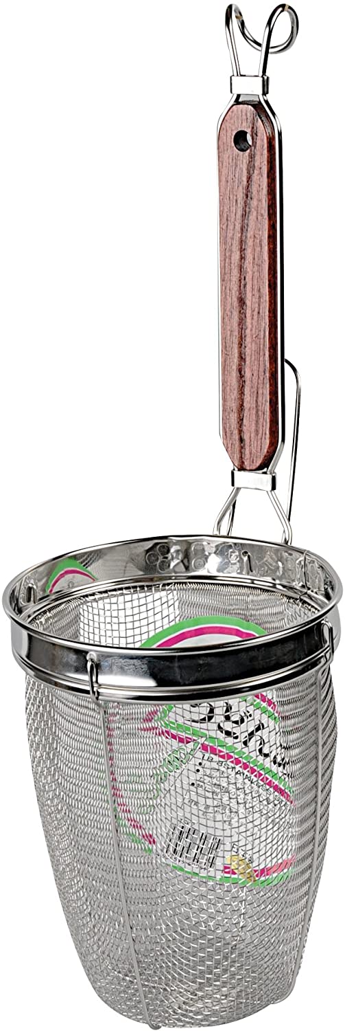 パターン(種類):丸底商品紹介サイズ:外径140x高さ180mm 網目:8メッシュ材質:柄/ケヤキ(着色)より●レストラン向け業務用商品●8メッシュ