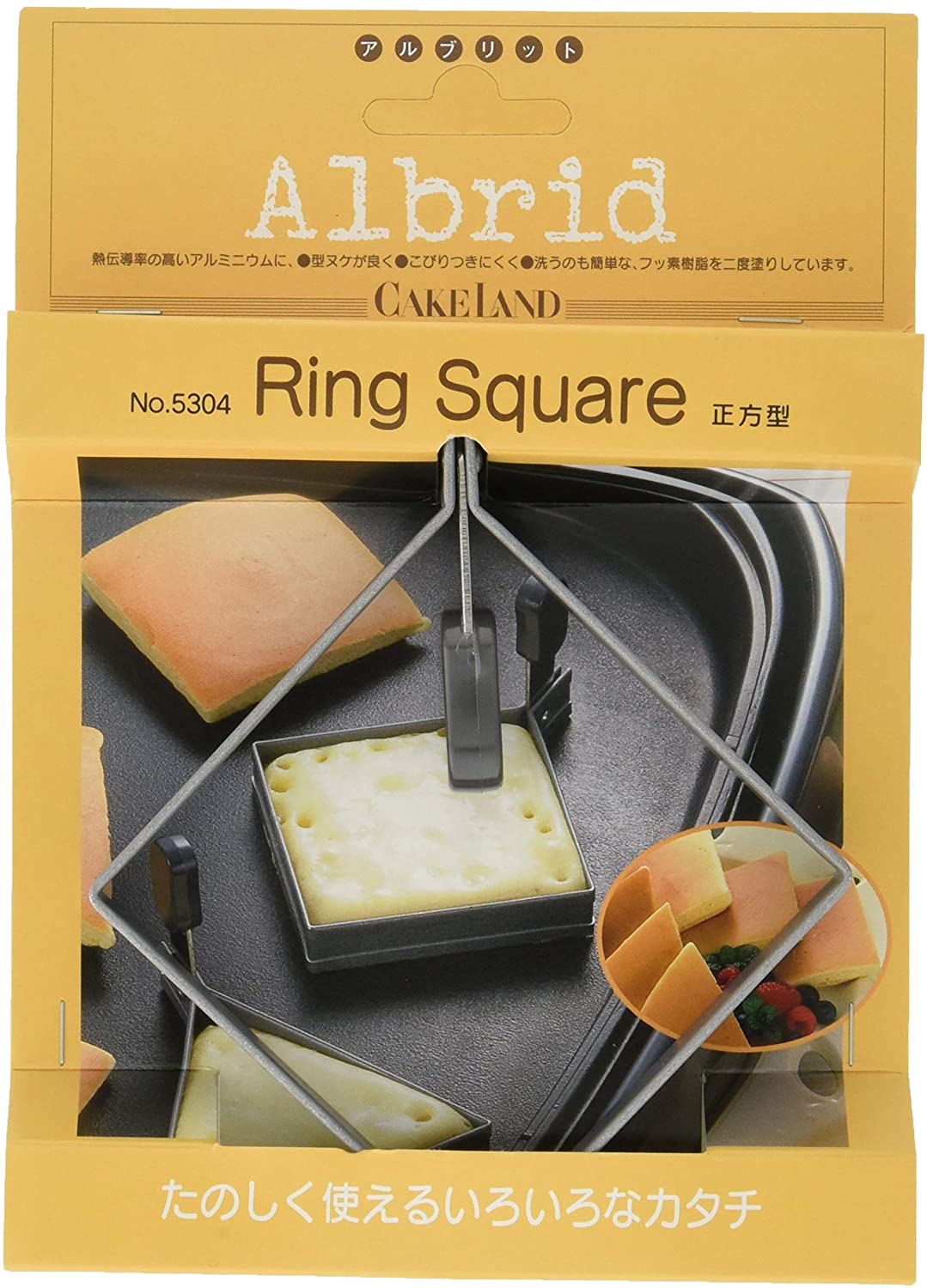 パターン(種類):正方型 No.5304商品の説明●メーカー品番,幅×奥行×深さ(内寸㎜),質量(㎏)●№5304,75×75×16,0.038●■アルブリットリングの特長 熱伝導率の高いアルブリットですから、こびりつきにくく、 洗うのも簡単です。材質:本 体:アルブリット(アルミニウム:フッ素樹脂2コート) ツマミ:メラミン樹脂(耐熱温度120℃)より●熱伝導率の高いアルミニウムにフッ素樹脂を二度塗りしている●アルミニウムなのでサビに強くとても軽い●フッ素樹脂なので型抜けがよく、洗うのも簡単●焼き菓子にも冷やし方にも使える●4.90494E+12