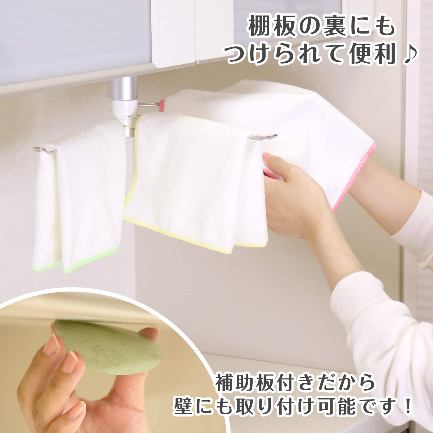 商品紹介●あら便利! 棚板の裏にも付けられる! ●壁面、棚板裏の両方に取り付けられます。 ●アームの幅が広いのでふきんがくっつかず、早く乾きます! ●アームはさびにくいステンレス製です。 ●取り付けられる場所は、タイル、ステンレス、透明ガラス、プラスチック面、鏡面、冷蔵庫、洗濯機などです。より●あら便利! 棚板の裏にも付けられる!●壁面、棚板裏の両方に取り付けられます●アームの幅が広いのでふきんがくっつかず、早く乾きます!●アームはさびにくいステンレス製です●取り付けられる場所は、タイル、ステンレス、透明ガラス、プラスチック面、鏡面、冷蔵庫、洗濯機などです