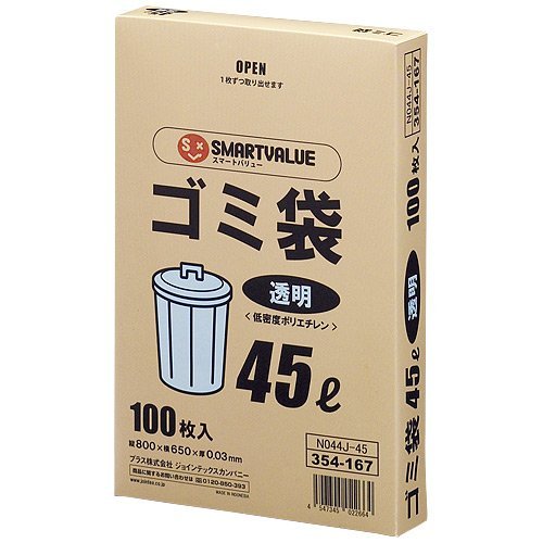 スマートバリュー ゴミ袋 LDD 透明 45L 100枚 N044J-45
