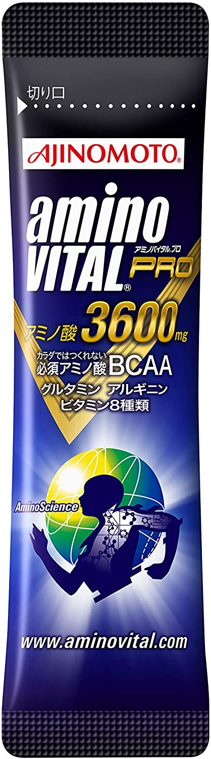 サイズ:14本入箱商品紹介商品紹介「アミノバイタル」プロは、限界に挑戦するすべての人にとって大切なアミノ酸3600mg(BCAA+グルタミン、アルギニンなど)が配合されたスポーツサプリメントです。アミノ酸は、全力で動くために必要なタンパク質の材料となるので、カラダ全体のコンディショニングにご利用いただけます。使用上の注意開封後はお早めにお飲みください。 原材料・成分栄養成分【標準栄養成分 製品(4.5g)当たり】エネルギー:18kcal、たんぱく質:3.6g、脂質:0.1g、炭水化物:0.5g、ナトリウム:0.83mg、ビタミンA:148μg、ビタミンB1:0.9mg、ビタミンB2:0.7mg、ビタミンB6:0.9mg、ナイアシン:3.8mg、パントテン酸:1.5mg、ビタミンD:1.8μg、ビタミンE:1.9mgアミノ酸:3.6g(ロイシン:0.54g、イソロイシン:0.43g、バリン:0.36g、グルタミン:0.65g、アルギニン:0.61g、他アミノ酸:1.01g)アレルギー物質卵、乳成分【原材料】還元麦芽糖、発酵乳パウダー(乳成分を含む)、グルタミン、アルギニン、ロイシン、イソロイシン、バリン、スレオニン、クエン酸、リジン、プロリン、メチオニン、ヒスチジン、ショ糖脂肪酸エステル、V.C、卵殻Ca、香料、リンゴ酸、甘味料(アスパルテーム・L-フェニルアラニン化合物、アセスルファムK)、フェニルアラニン、トリプトファン、ナイアシン、クエン酸鉄Na、パントテン酸Ca、V.E、V.B6、V.B1、V.B2、V.A、V.D、V.B12続きを見る