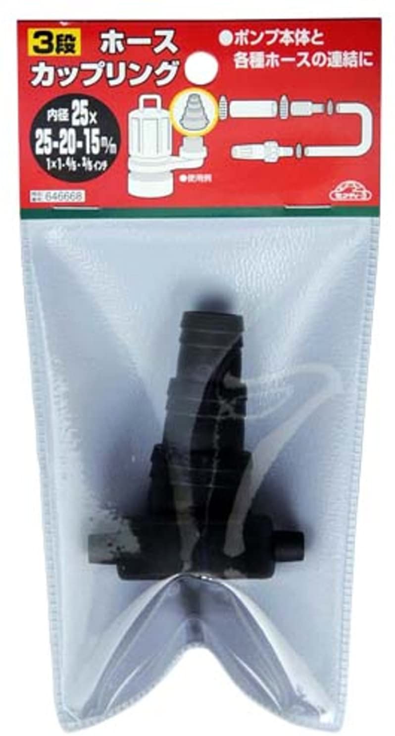 1つでポンプ本体と各種ホースの連結が可能【用途】ポンプパーツ【特徴】・ポンプ本体と各種ホースの連結に使用・メスネジ部はポンプ本体に、タケノコ部はホースに接続・ホースバンドを使用してホースに接続・25mm口径ポンプを25mm、20mm、15mmのホースへの接続が可能