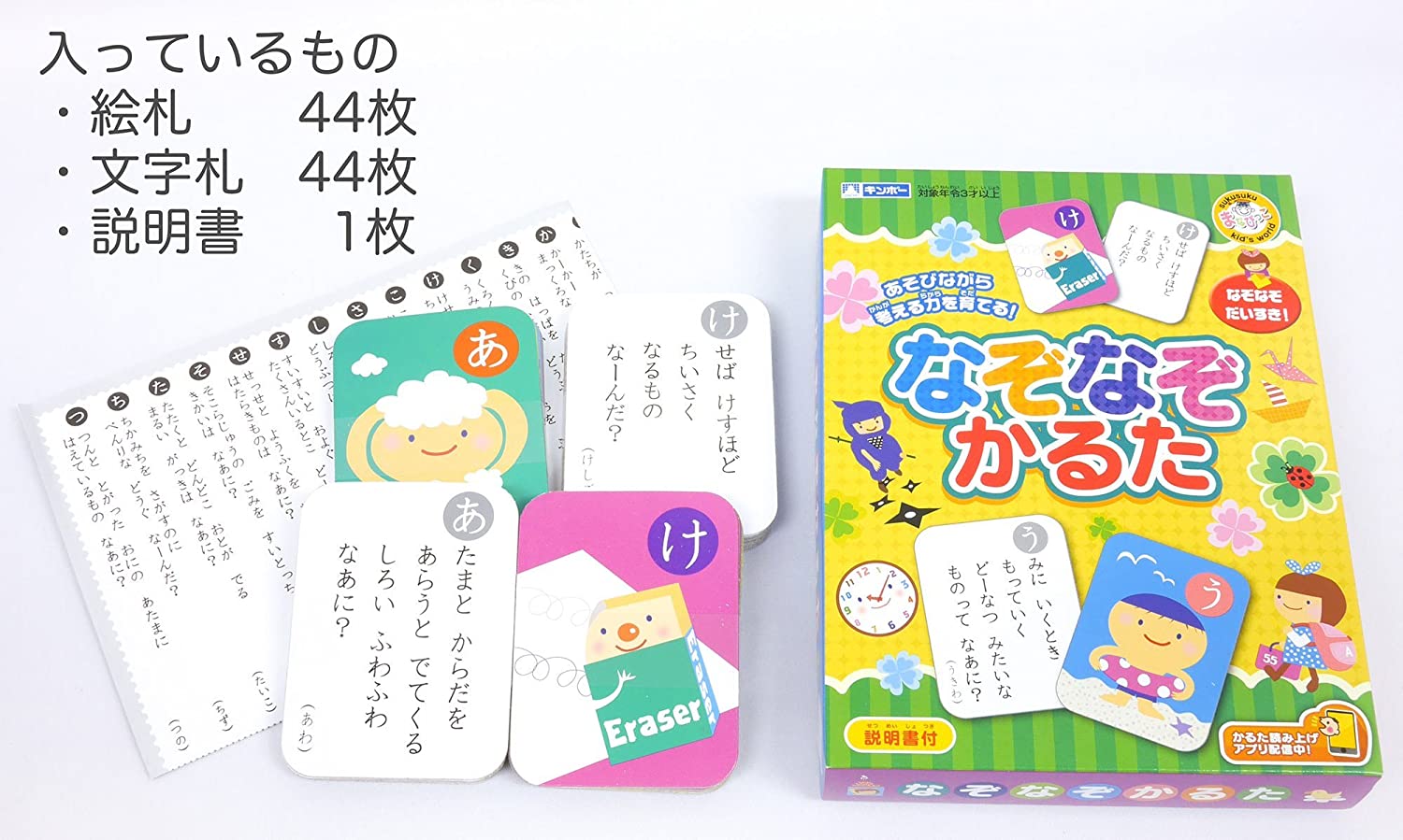・セット内容:絵札44枚、文字札44枚、説明書1枚