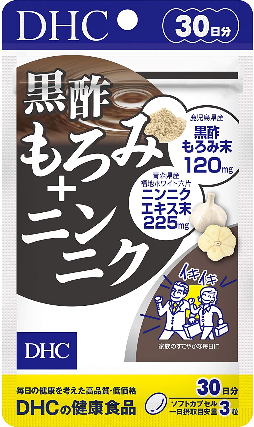黒酢とニンニクのダブルパワーで、元気と粘りに底力! 健康に役立つアミノ酸が豊富に含まれ、漢方の世界でも親しまれてきた黒酢。紀元前1300年頃、ピラミッド建設にたずさわる労働者のスタミナ源として食されていたニンニク。 『黒酢もろみ+ニンニク』は、この2つの伝統食材が毎日まとめて手軽に摂れるサプリメントです。 伝統製法で作られる「鹿児島産黒酢もろみ」と、高品質で知られるブランドニンニク「福地ホワイト六片」を使用。スタミナ不足が気になる方、ここイチバンの粘りが欲しい方におすすめです。 こだわりのスタミナ食材「福地ホワイト六片」 ニンニクの原料には、青森県の豊かな大地で育ったスタミナ食材「福地ホワイト六片」を使用。その白く大きな実に無臭化工程を施し、有用成分アリインはそのままに、臭いだけを抑えたニンニクエキス末にしました。1日あたり225mg配合。つらい疲労、ストレス、睡眠のお悩みにもおすすめの成分です。 美容・健康サポートに「黒酢もろみ」 鹿児島県のDHC指定醸造元にて、徹底的な品質管理のもと製造した黒酢もろみを使用。国内産玄米を346g/1Lとぜいたくに使い、職人の手によって約1年間も自然発酵させた「壷仕込み」の黒酢。その熟成過程でできる壷の底の沈殿物・黒酢もろみには、黒酢の栄養がギュッと凝縮されています。これを粉末化し、1日あたり120mg配合しました。 ※水またはぬるま湯でお召し上がりください。