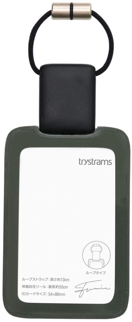 色:カーキ?|?スタイル:ループ 縦商品紹介柔らかな曲線と光沢感が美しいハードタイプのリール付きIDカード用ホルダー。軽量薄型ボディとシンプルなストラップ、ボタンに当たる音を抑えるやわらかな素材の裏蓋など、ストレスのない使用感を生み出します。◆プロダクトデザイナー柴田文江氏によるデザイン:透明窓とフレームが作り出す層の奥行きが美しいカードケースと顔周りに影響しないよう配慮されたシンプルなストラップ。iFデザイン賞2011、redodotデザイン賞2011受賞。◆プラスチック:カードを保護する樹脂製ながら、薄くて軽いカードケースボディ。◆伸縮リール:入退室時の社員証や交通などの非接触カードに便利な伸縮するリールタイプ◆服のボタンに当たる音を抑えるやわらかな素材の裏蓋。【03/ループ縦型】バッグやベルトループに付けられるループタイプ。パスケースとしても活躍します。種類:ループ縦型、ID・ICカード1枚用[カードサイズ/54×86×0.8mm]材質:ケース/PC、裏蓋/エラストマー、ストラップ/PA、リール/R-ABS、取り付け金具/真ちゅうサイズ:68×11×170mm、約39g、ストラップ/Φ3mm×約90cm、リールひも/最長約50cm、カードケース/68×103mm●パッケージ/透明PET(吊り下げ)より快適ワークをシンプルに実現するワークアイテム ???インダストリアルデザイナー 柴田文江 デザイン・監修による、ムダのないシンプルでありながらさりげなく主張するトライストラムスのSmooth(スムース)スタイルライン。 ???カフェや自宅、会議室でも、身近な空間を自分らしくしたいフリーなワークスタイルのビジネスパーソンのための軽快なデザイン。 ???SMOOTHSTYLE(スムーススタイル)、SPREAD(スプレッド)シリーズなど。