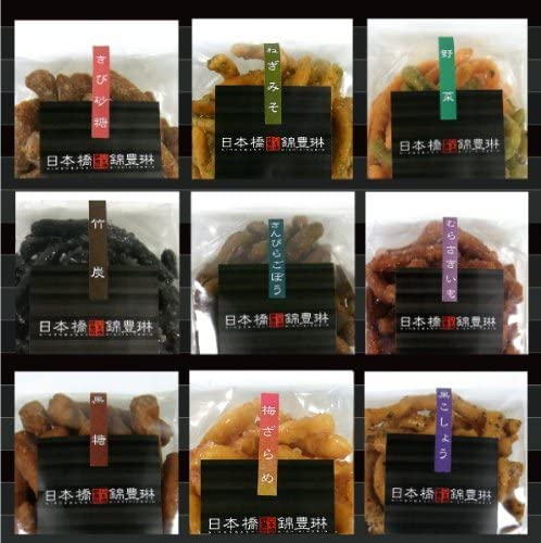 ◆内容 ○日本橋 錦豊林(セット内容) きんぴらごぼう ・むらさきいも ・野菜 ・ねぎみそ ・黒こしょう ・きび砂糖 ・竹炭 ・黒糖 ・梅ざらめ ◆サイズ 箱サイズ26×31.5×6(cm) 各袋サイズ 8×12(cm) ◆賞味期限 約2ヶ月 ◆発送について (1)ご注文後3日以内となります。 (2)土日祝日注文なさったものは月曜日以降の発送になります。