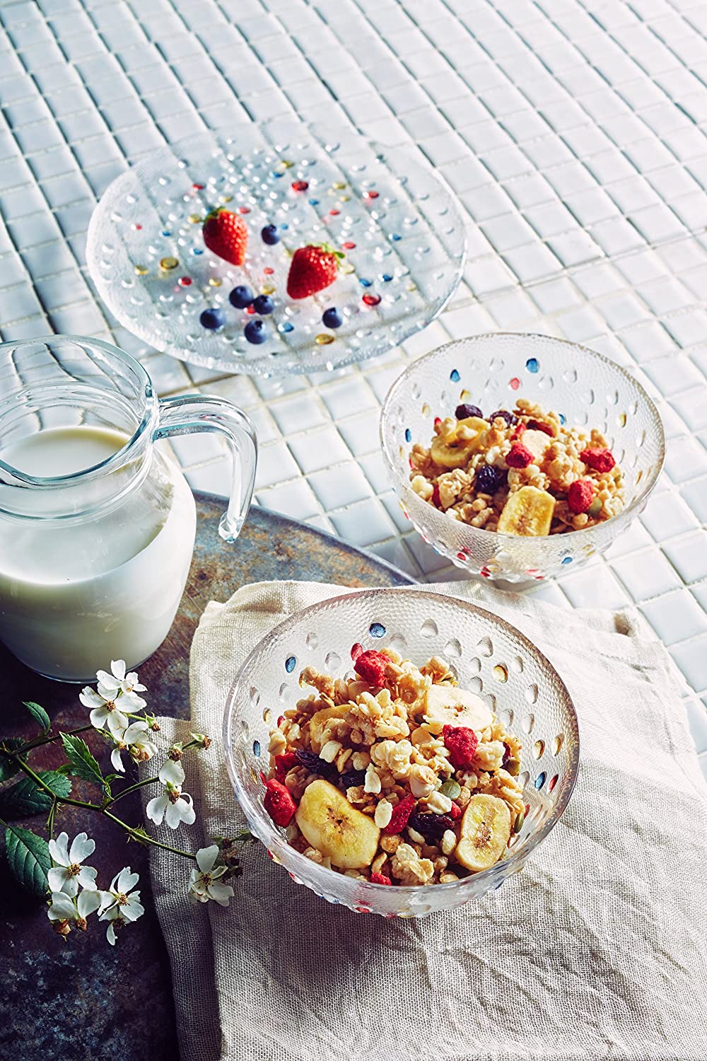 DANSK 1954年設立のダンスク社は、「デンマーク風」という意味により「DANSK」と名付けられました。 スカンジナビア・モダンアートをコンセプトに、北欧を中心とした各国のデザイナーたちによって個性あふれるキッチン&テーブルウェアがつくり出されてきました。「全ての製品は、機能的かつ洗練されたものであるべきである。」という独自の哲学にならい、ダンスクでは今日に至るまで、独創的で洗練された製品を提供しつづけています。 DANSK バブルコンフェティシリーズ 透明ガラスにレッド・イエロー・ブルーの宝石のようなドットが散りばめられています。 このカラフルなドットは、丁寧にハンドペイントによって色付けされています。 ドットには立体感があり、キュートな雰囲気と使いやすさで人気です。 食卓はもちろんのこと、食器棚にしまっているときもインテリアのように輝きます。 もっと読む カラフルなドット ハンドメイドで色付けされたドットのデザイン。 職人の手によって造られた一点一点異なる風合いをお楽しみいただけます。 いつものデザートをおしゃれに アイスクリームやケーキなどいつものデザートをおしゃれに食卓へ もっと読む スペクトラシリーズアラベスクシリーズセージソングシリーズビストロシリーズチボリシリーズ