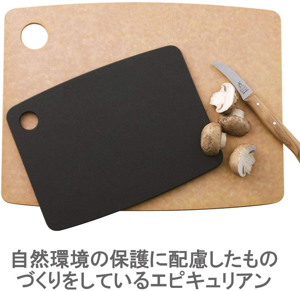 シンプル&スタイリッシュなカッティングボード アメリカ エピキュリアン社のとても機能的、そしてシンプルで美しい形のカッティングボード。機能性だけでなく、デザイン性にも優れているのでキッチンをスタイリッシュに演出。 もっと読む 天然木の繊維を合成した素材を使用 耐久性に優れており、表面は非多穴性で水分や雑菌の浸入を防ぎ、清潔に保つことが出来る。 もっと読む 薄型軽量 軽いため、食材を切ってそのままお鍋にさっと入れることが出来る。またその薄さで収納性も抜群。フックにかける穴もあるので見せる収納にも。 もっと読む 食器洗浄機対応 このカッティングボードのすごいところは、とても熱に強い事。木のまな板の質感なのに、鍋をおいて鍋しきがわりにしても大丈夫な位。もちろん食器洗浄機にも使えて衛生的。 もっと読む 豊富なサイズ サイズも豊富に揃っているのでキッチンスペースや使い勝手にあわせて選べる。また、薄型省スペースで場所もとりにくいので、肉や野菜など、用途によって複数枚使い分けるのにも。 もっと読む
