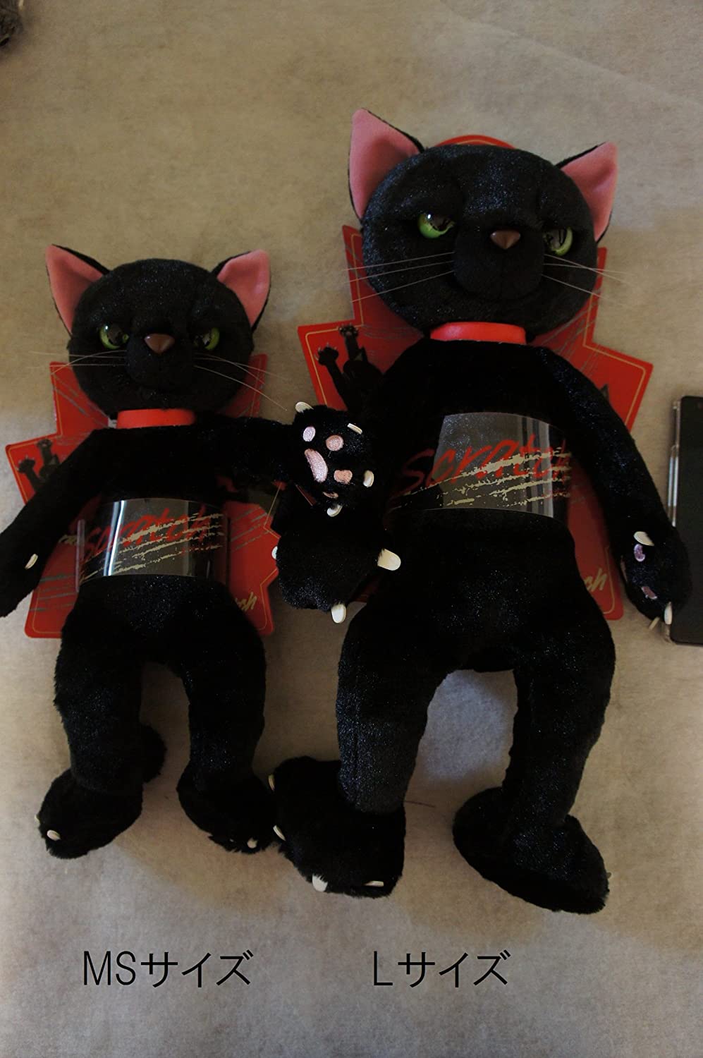 画家 米田民穂が描いたイラストより誕生したシリーズ「スクラッチ」 するどい目つきと爪が特徴の猫のぬいぐるみ。(.co.jpより)