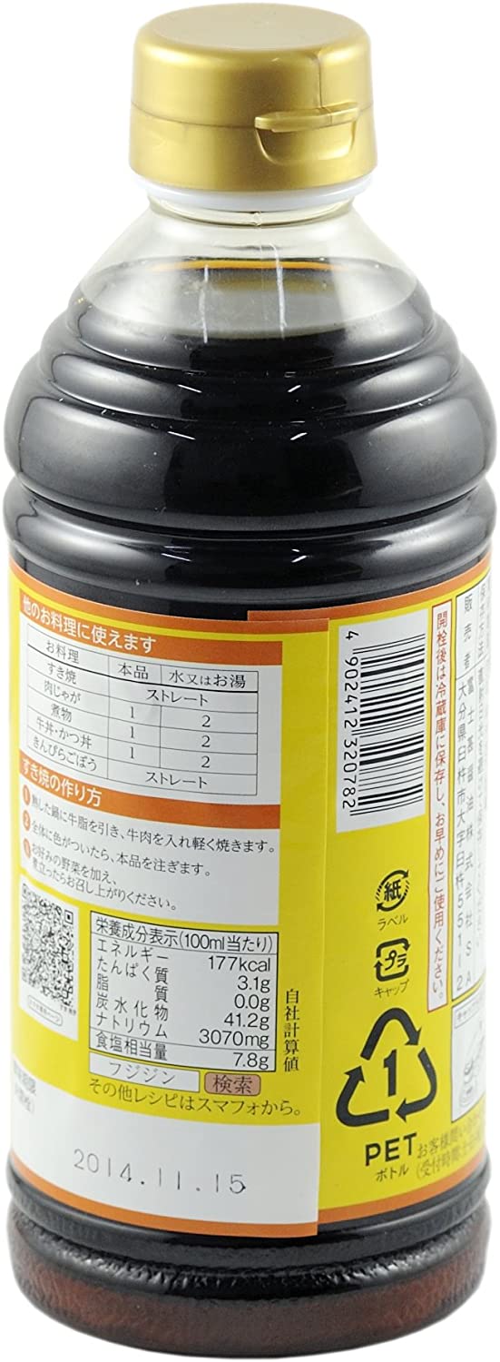 商品紹介九州の濃口本醸造しょうゆをベースに、コクのある三温糖を加え、本みりんで全体の味を整えました。 本品1つでおいしいすき焼きが誰でも簡単に作れます。~富士甚醤油株式会社~安心を、いただきます。毎日に「安心をお届けしたい。家族の温もりや、食卓を守りたい。愛情と感謝をたくさん込めて、これからもこの先も、フジジンは日本の食卓をずっと支えてまいります。ご注意(免責)>必ずお読みくださいアレルギー表示:小麦、大豆