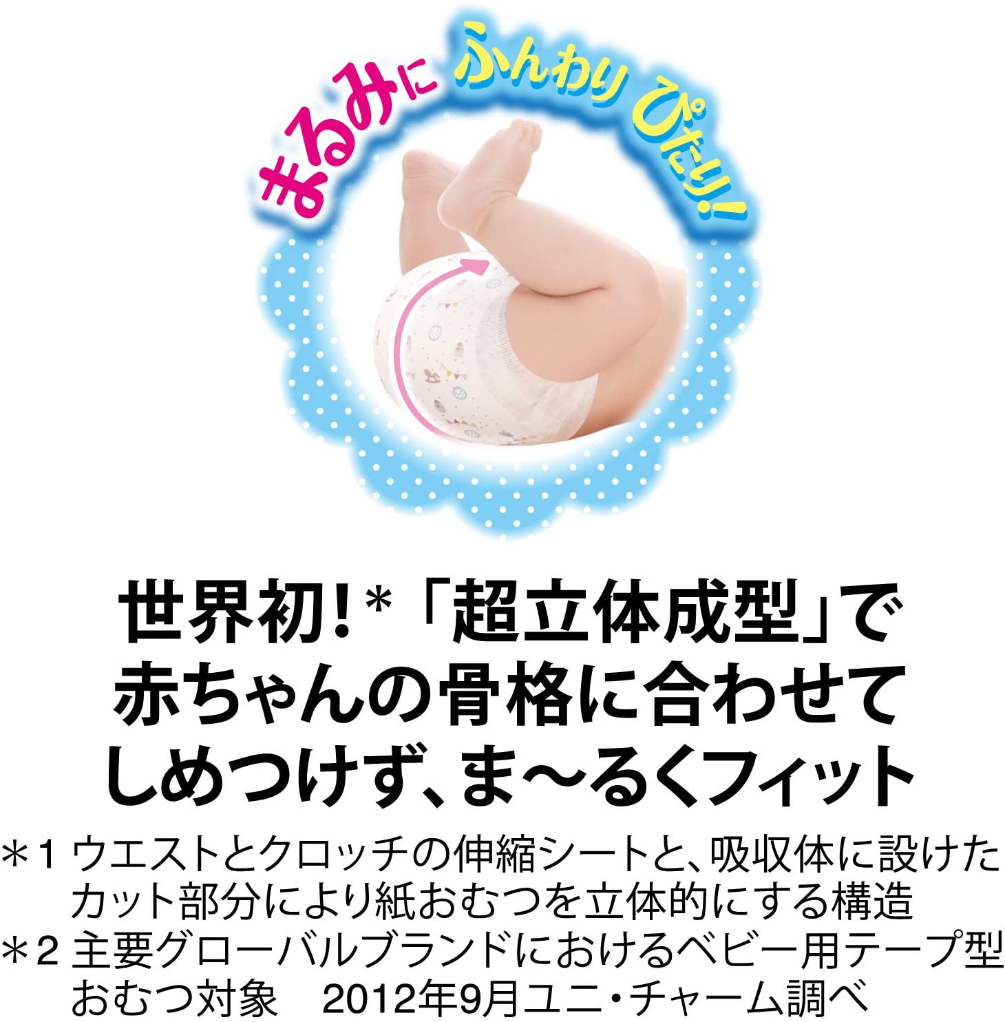 商品紹介●「のびーるフィット」搭載。寝返り、おすわりなどの赤ちゃんの動きに合わせてフィットして赤ちゃんが楽に過ごせます。●デリケートなお肌にやさしい「全面通気」●「ウエスト伸縮ギャザー」、「足回りギャザー」を搭載しぴったりフィットします。●成長に合わせてスタイル・ポーズが変わる、くまのプーさんデザインです。使用上の注意●使い捨て紙おむつですので、洗濯はしないでください。あやまって洗濯すると、紙おむつの中身※が他の衣類につく場合があります。その場合は衣類を脱水してはたき落としてください。また洗濯機内部に残ったものはティッシュ等で拭き取った後、水で充分洗い流してください。※紙おむつの中身はパルプやポリマー(高分子吸水材)ですが、万が一お肌についた場合も安心なものを使用しております。●お肌に残ったうんちはカブレの原因になりやすいので、キレイに拭き取ってください。●お肌に合わない時は、ご使用をおやめください。●赤ちゃんが紙おむつを口にしたりいたずらをしないよう、赤ちゃんの手の届かない所に保管してください。●高温になる場所に置くと、パッケージが溶けて他のものにはりつく危険がありますので、暖房器具などの近くには置かないでください。●洗剤などが付着すると、外袋の色が落ちることがありますのでご注意ください。●日光の影響でお知らせサインの色が変わりにくくなりますので、直射日光の当たらない所に保管してください。●湿度の高い条件では、使用前でもお知らせサインの色が変わることがありますので、ご注意ください。●ぬれた状態で長時間経過すると、吸収体が青く見えることがあります。