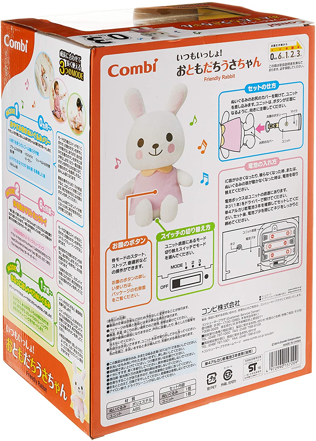 商品紹介☆成長に合わせて長く使えるベビーぬいぐるみ「いつもいっしょ! 」シリーズ☆・モード1は、0ヶ月から使えるおやすみ用のぬいぐるみメリー。ふわふわやわらか素材の肌触りと、やさしい子守歌&胎内音が赤ちゃんの眠りをサポートします。・モード2は6ヶ月頃から使えるリトミックトイ。英語歌詞のリトミックミュージックに合わせて、ぬいぐるみが歌います! 一緒に体を動かしながら歌う事によって、小さな頃から英語に親しむ事ができます! ・モード3は1才頃から遊べるまねっこぬいぐるみ。赤ちゃんやママのおしゃべりを、うさちゃんが真似しておしゃべりします。ひとりでも、みんなでも、いろんな遊びができて、遊びながらおしゃべりのトレーニングや表現力のトレーニングをサポートします。お誕生から3才頃までの「寝かしつけ」と「知育」を1台でサポートしてくれる知育玩具です。ぬいぐるみは丸洗いできるので、衛生的で安心です。(.co.jpより)安全警告STマーク
