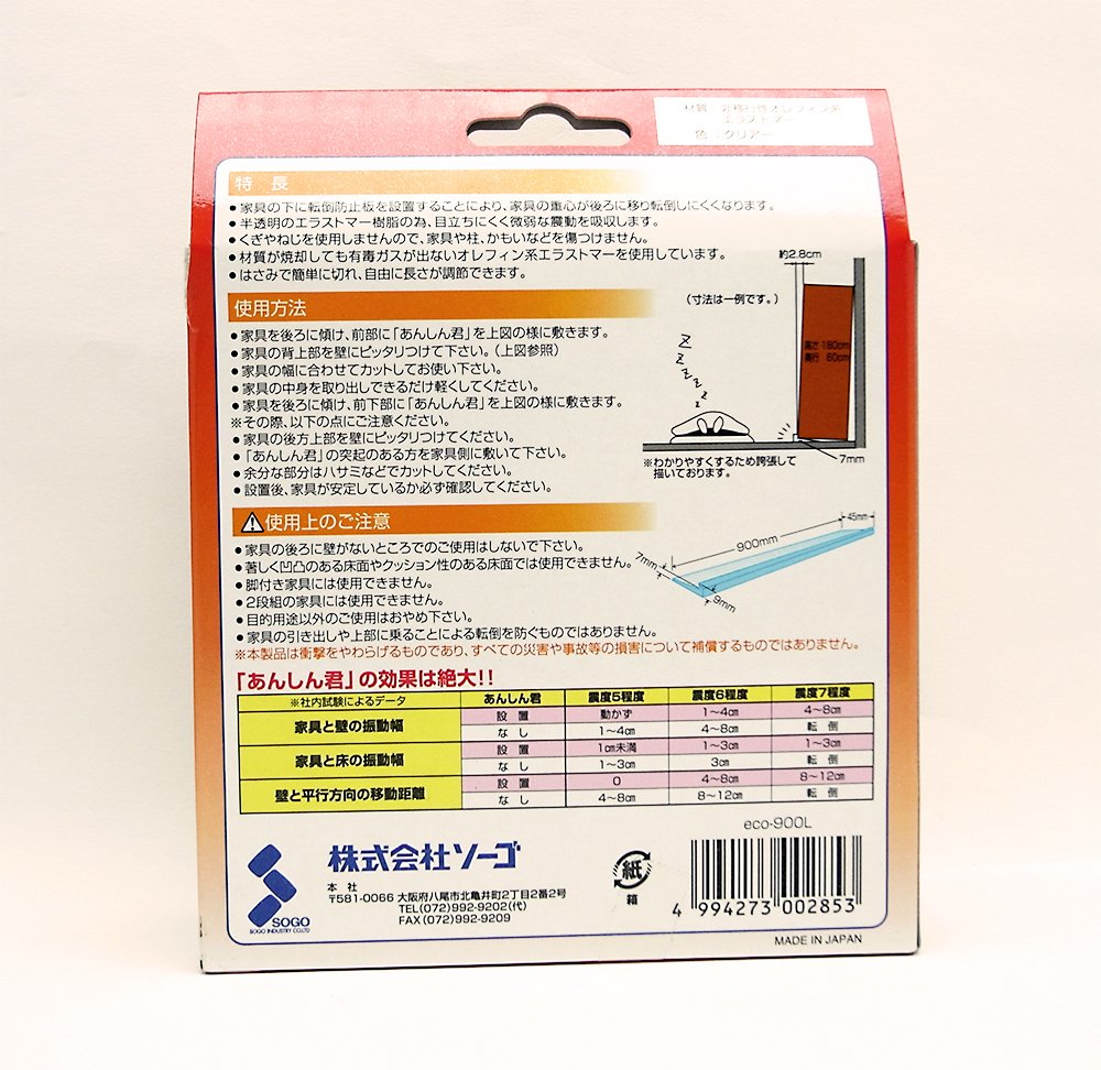 ソーゴ エコ家具転倒防止安定板 あんしん君 90cm クリアー eco-900L