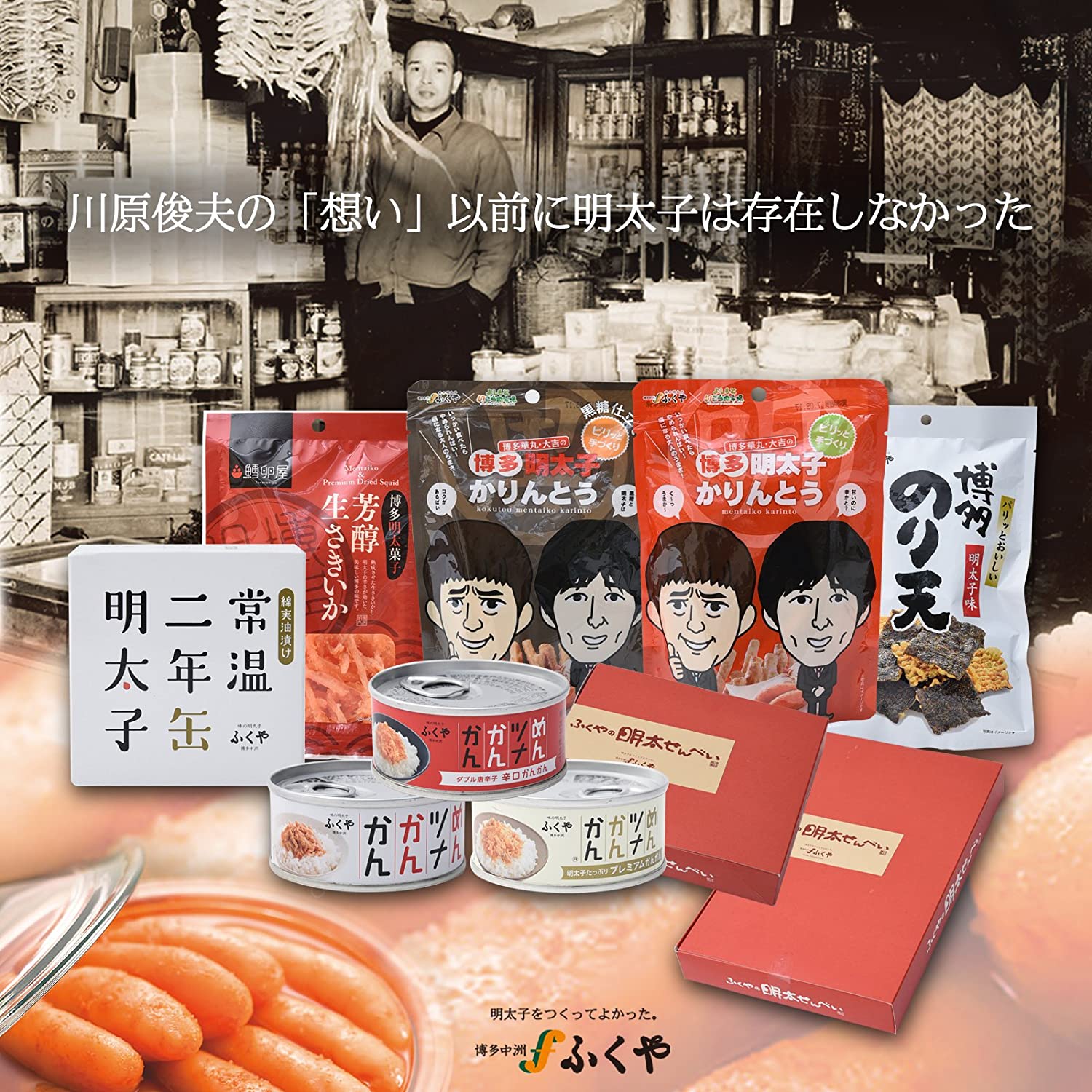 もっと読む <味の明太子>の原料は、スケトウダラの卵巣。これを、独自の調味液に漬けこんでつくりあげます。そのとき最も大切なことは、なによりもまず確かな素材を使うこと。ふくやは、創業のときから変わらないこの素材への想いをいまも受け継ぎながら<味の明太子>をつくりつづけるとともに、業務用食料品「たべごろ百旬館」の展開も行っています。「おいしさひとすじ」。創業から変わらぬこの想いこそ、ふくやの理念です。 焼け野原だった博多中洲から、〈味の明太子〉は生まれた。 昭和23年、博多・中洲で小さな食品店を営んでいたふくや創業者・川原俊夫は「お客様に喜んでもらえるものを売りたい」と日本で初めて明太子が作られ、店頭に並べられました。新しい惣菜としてクチコミで広まっていった明太子は次第に関東や関西でも知られ始めます。そして昭和50年の九州新幹線博多駅開通を機に全国に広まっていき、その伝統は映画「めんたいぴりり」のモデルもなりました。 もっと読む 良いものをより安く、安全に。そのこころを、届けたい。 ふくやが明太子作りでもっとも大切にしていることのひとつが良質な「たらこ」を使うこと。 成熟度によって味が異なるなかでも、ふくやが選ぶのは「真子(まこ)」と呼ばれる最も明太子に適した状態のものだけです。雑味がなく旨みがしっかりある「真子」の美味しさを活かすため味つけはごくシンプルにとどめ、アルコールやみりんなどは一切使用しません。 最少の味付け、最大の美味しさ。ハリのある薄皮に包まれた、取り出した卵そのままの“一本もの”がゆえに「真子」の中に調味液がゆっくりと浸透。外側ほど唐辛子が香り、内側になるにつれ「たらこ」の旨みが強くなるという具合に奥行のある味わいとなります。 品質を守り、いつも変わらぬおいしさを届けたい。その実現のために、ふくやは最先端の生産体制を確立しています。