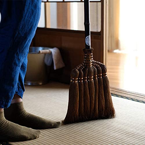・はじめて棕櫚ほうきをご使用する場合のお願い:仕上げの段階で、棕櫚の繊維の屑は落としはしていますが、棕櫚皮ほうきの特徴として、使い始めに棕櫚の繊維屑が落ちてしまいます。使いはじめる前に、室外(玄関先、ベランダなど)や硬い床の上に新聞紙を敷いて、軽く払い落としてからお使いください。そのため最初は畳ではなく、落ちた樹脂も掃きやすいフローリングや板の間からお掃除をしますと、ブラッシングしながら屑が落ちますので、掃除をしながら屑を落としたい場合は、フローリングからお使いください。