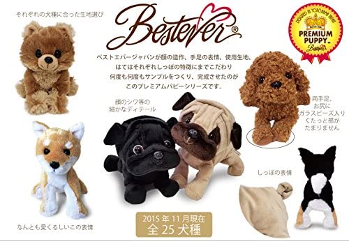 ベストエバーの技術と表現力を存分に発揮したプレミアムパピー。手足の先にはビーズ、そして犬種にぴったりあった最高の手触りの生地を使用しています。前から見ても、横から見ても、後ろから見ても可愛いパピーです。手足をアジャストして色々なポーズを作れます。(.co.jpより)