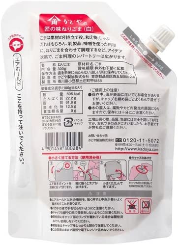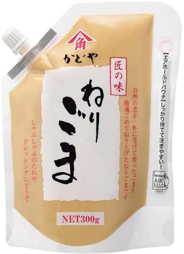 白ごまを煎ってから、きめ細かく練り上げ、なめらかに仕上げたねりごまです。混じりっ気なしの、ごま本来の風味を感じていただけます。ご使用時にもみほぐしながら、また適量を出しやすい「パウチ容器」です。かどや製油はお客様につねに感謝の心を持ち、安心・安全かつ価値あるごま製品を提供することで、健康でより豊かな食生活に貢献します。