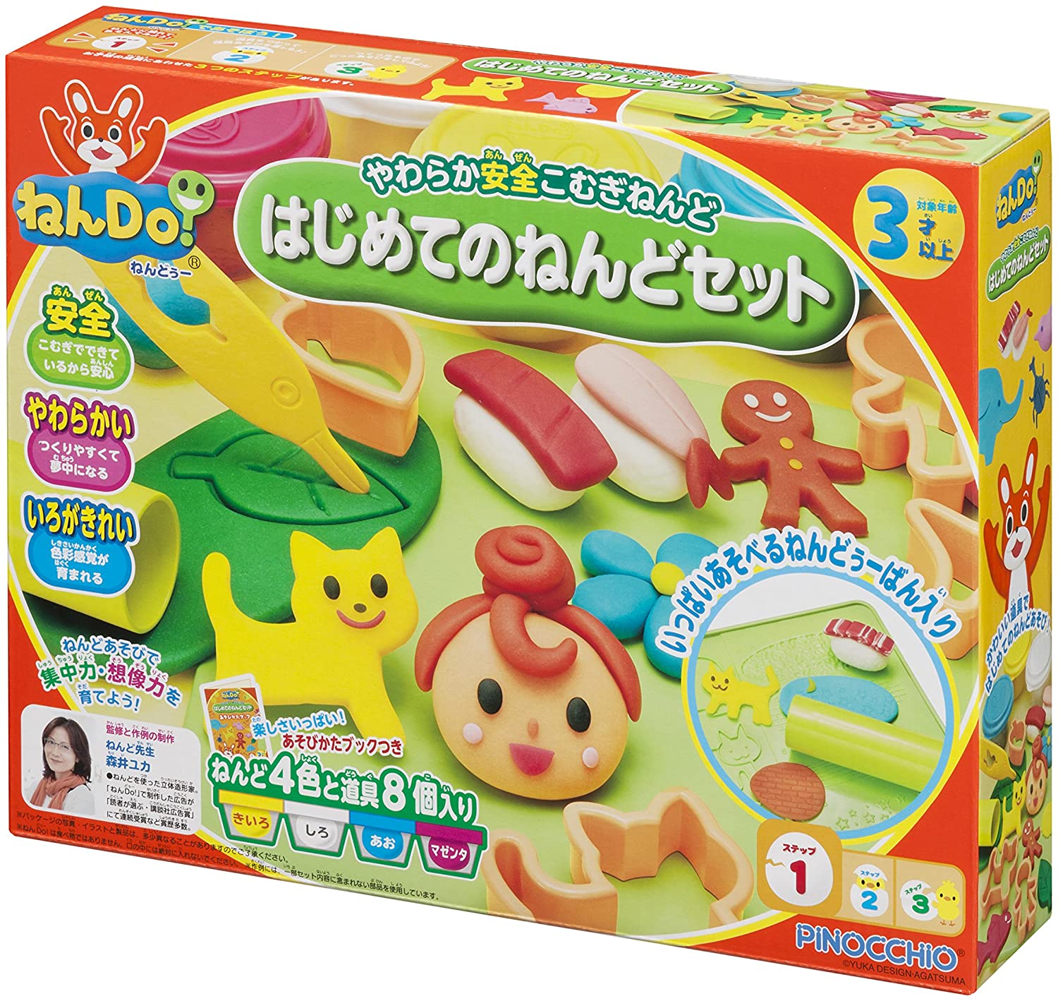≪ねんDo!シリーズのSTEP1≫はじめてセットです。はじめてねんど遊びをするお子様に最適な道具とねんどが揃ったセットです。他のセットでも一緒に遊べる、おおきなねんど板が入っています。ねんど板の表面はねんど板、裏面は抜型遊びや模様遊び、スタンプ遊びが楽しめます。★鳥さんヘラ、4種の抜型、のばし棒の他、ねんどもたっぷり入っています。★ねんどの色:白、青、マゼンタ、黄色【セット内容】ねんど4色(各40g 白、青、マゼンタ、黄色)、ねんど板、抜型(4種)、鳥さんヘラ、のばし棒、遊び方BOOK、プレイシート[セット内容]ねんど4色(各40g 白、青、マゼンタ、黄色)、ねんど板、抜型(4種)、鳥さんヘラ、のばし棒、遊び方BOOK、プレイシート(.co.jpより)