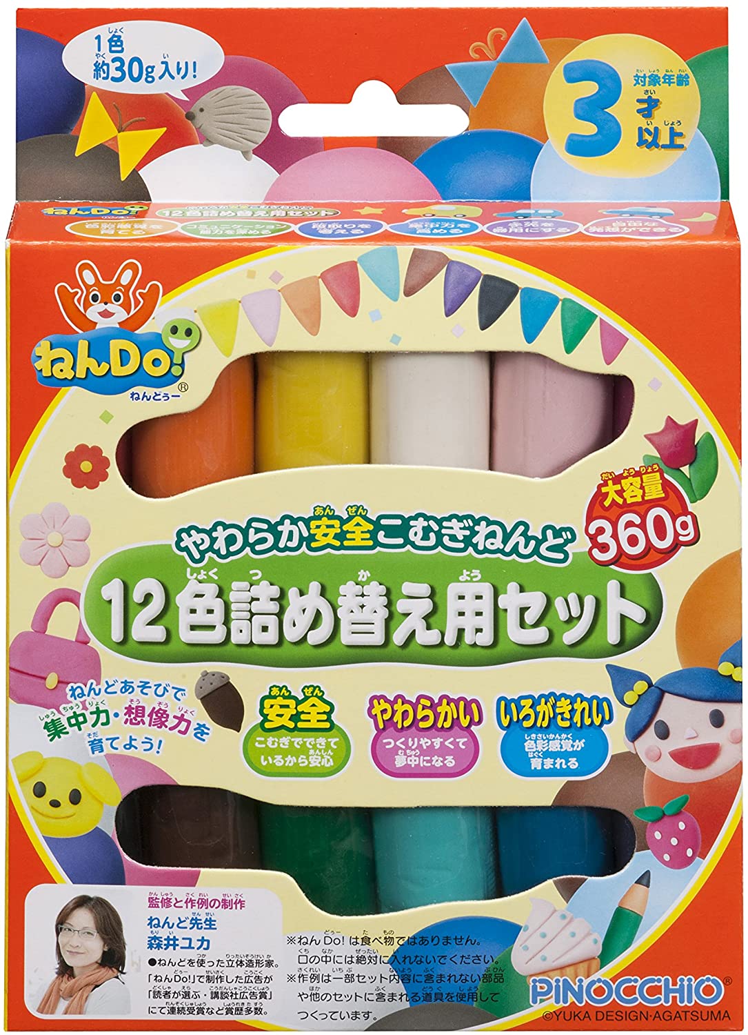 ・セット内容:ねんど30g(しろ、きいろ、マゼンタ、あお、あか、みどり、ちゃいろ、くろ、ももいろ、オレンジ、むらさき、みずいろ)×各1