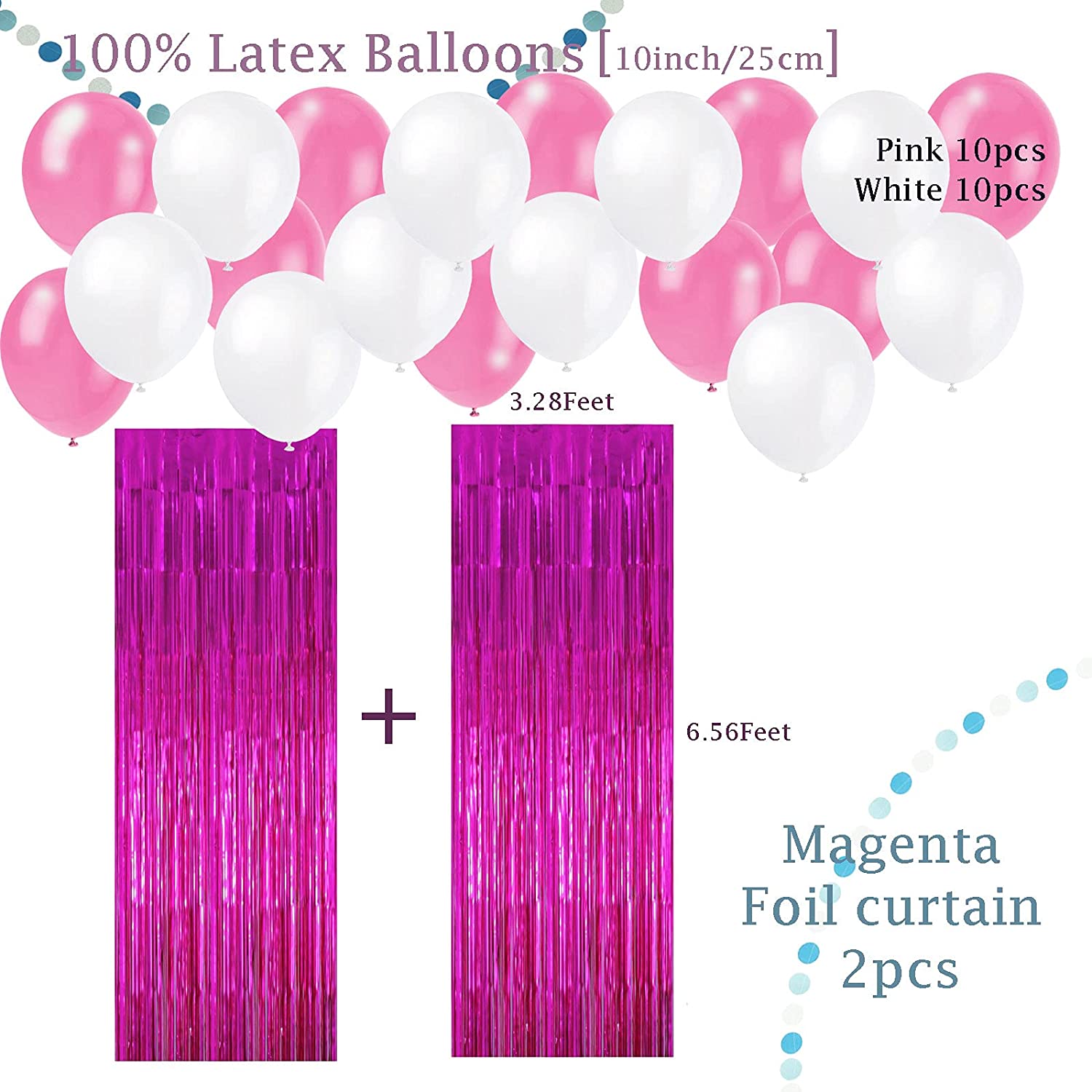 ・★このHappy Birthday飾りセットには、マゼンタホイルカーテン2枚パック、金箔文字付きピンクとクリームバナー1枚 (カード13枚)、各カードのサイズは長さ5.9インチ x 幅1.7インチ。バナーの長さは11フィートで、各約6.5フィートの長い円形ドットバナーとサイズは2インチの三角形バナーと6.7インチの長さ。 5.1インチ。 W、8インチのハニカムボール4個、10インチの紙ファン4個、10インチの紙製ファン4個、ホイル製ハンギング渦巻き2個 (合計12個) 各渦巻き20インチ、10インチのラテックスバルーン20個。