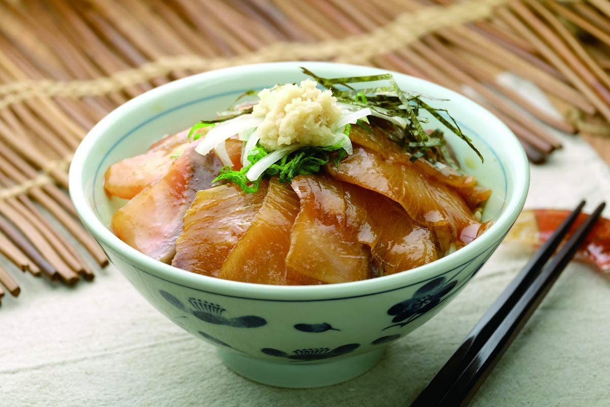黒潮の恵みを受けリアス式海岸の3大漁場といわれる野見湾(須崎市)で養殖されたブリを使用しております。 全国の養殖の発祥の地であり、昔ながらの出来るだけ天然に近い魚体を目指す管理法が現在にも引き継がれており、大規模管理の養殖場にはない身質が特徴です。 水揚げ後、すぐに活き締めを行い、高い鮮度を保ったまま切り身にしたものを、"特製タレ"に漬けこみ、短時間のうちに急速低温冷凍した製品です。 解凍しご飯にかけるだけで、漁師町でしか味わえないような新鮮な漬け丼がいただけます。 お好みで、ネギ、刻みのり、わさび等を載せてお召し上がり下さい。お茶漬けとしてもお召し上げり頂けます。