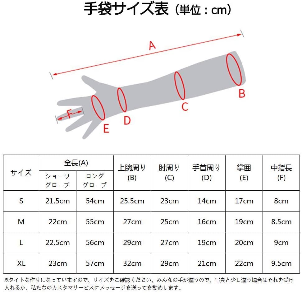 色:ブラック肘上丈グローブ | サイズ:M【サイズ】 ロングMサイズ 長さ55cm。 腕周り27cm,肘25cm,手掌19cm,中指長さ8.5cm ショートMサイズ 長さ22cm。 腕周り16cm 手掌19cm 中指長さ8.5cm  【特徴】無地タイプの濡れたような艶っぽい光沢感のあるドレスグローブです。 伸縮性に非常に優れ、フリーサイズ。 長さ、きつさ、ゆるさは腕周りによって異なります。手元に完璧に合わせ、手元のラインを描いて、太くても細くても履け、手元をもっと繊細に見える。いつものコーディネートにプラスするだけでも女性らしさたっぷりの着こなしが楽しめるアイテム。  -【素材】フェイクレザー。ストレッチ素材でフィット感があります。動きやすく、着心地良く感じます。  -【お手入れの方法】 冷水で手早くやさしく押し洗いします。汚れがひどいところは石鹸か洗剤をつけて軽くたたき、部分洗いをします。手洗いが終わったらタオルなどで優しく水気を切りください。 絞り不可。日陰でしっかり自然乾燥させます。乾燥機やアイロンがけは避けましょう。表面の光沢を保護するため、レザークリームを使うことはできます。  -【適用場合】欠けないコーディネートのアクセサリーです。小物ひとつでグンと印象が変えられるので、お手持ちの衣装と組合わせればオリジナルのお洒落なコーディネートを楽しめますね。 ワンピース、ミニスカート、半ズボンとコートなどのファッションな季節服装と組み合わせて、クール&セクシーなボンテージに変身して女王様コスチュームにも人気です。 結婚式、ブライダル、前撮り、二次会、パーティー、披露宴、舞台、演劇、コスプレ、写真撮影、ダンス演出、クリスマス、キャンギャル、コンパニオン、クラブなどのシーンで幅広く活躍することは間違いなしです!  -【注意】写真と実際の商品は限りなく近く撮影しておりますがフラッシュの具 合によって実際のものと色が多少異なる場合がございます。