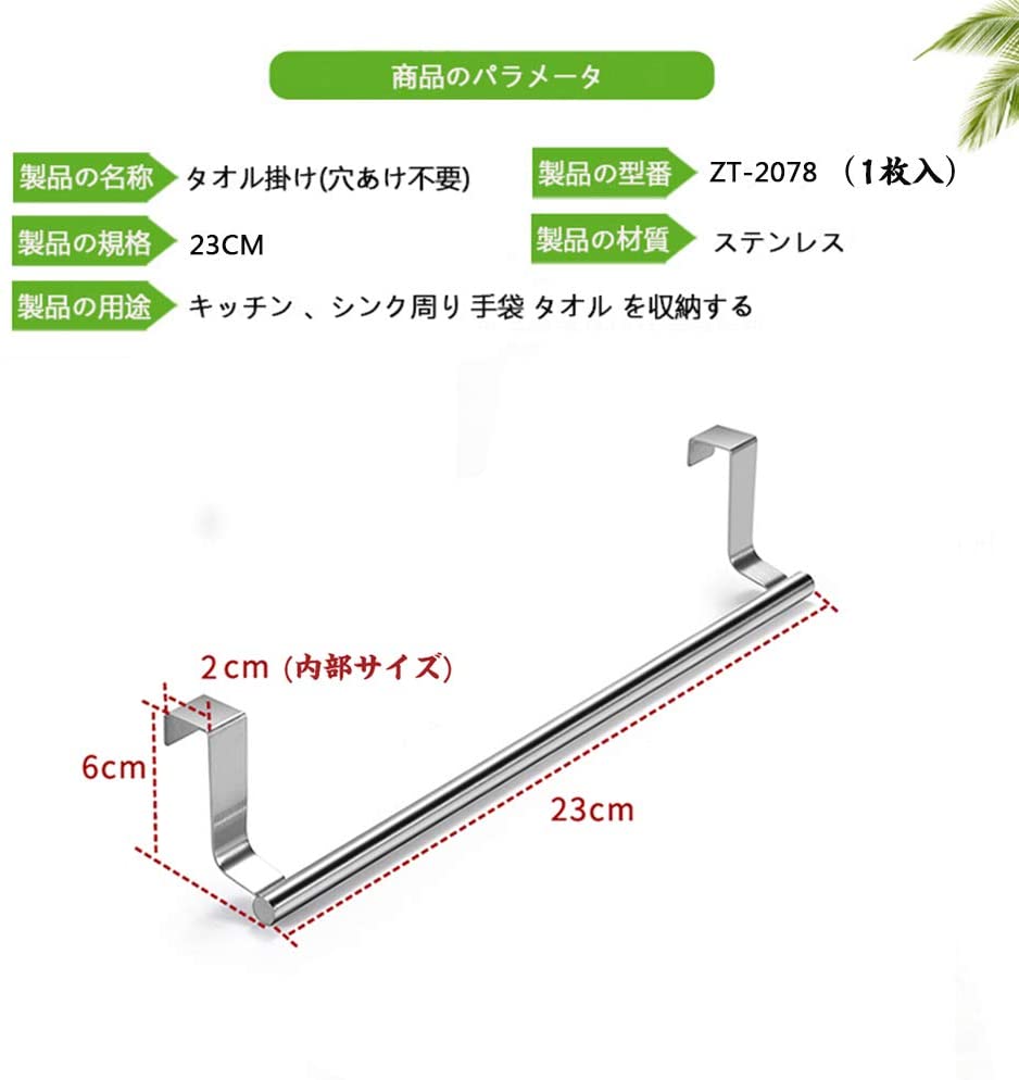 タオルバー タオル掛け 収納ラック トステンレス 穴あけ不要 キッチン シンク周り 手袋 タオル を収納する キッチン用タオルかけ キッチン収納 (23cm)